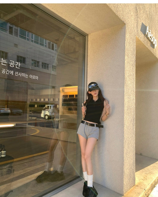 Mon. 休閒長腿妹 百搭鬆弛感短褲 灰/黑