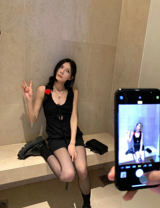 Fri. 法式收腰大V芭蕾裙 黑