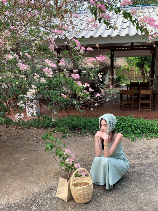 Sun. 花園藏嬌 經典掛脖抹胸繡花連身洋裝