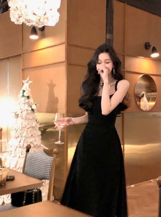Wed. 從一時刻經典法式收腰方領氣質連身裙 黑