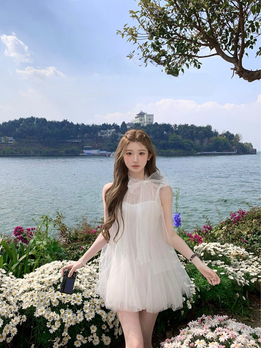 • Mon. 奶慾陷阱蕾絲襯衫領掛脖夢幻連身裙