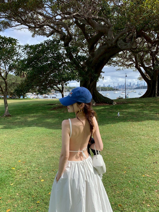 Thu. 甜心夢露 法式高級挖背度假連身裙 白/黑