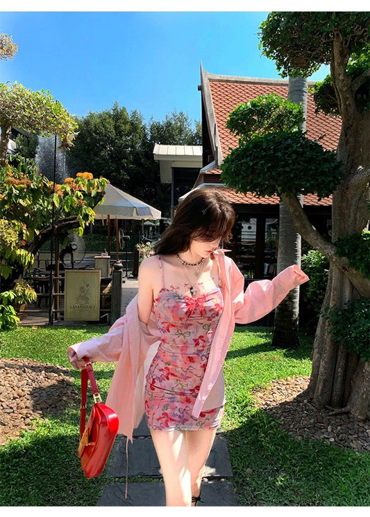 Mon. 蝴蝶逸逃Y2K風格彩繪細肩吊帶裙 粉