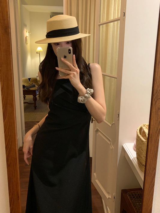 • Wed. 法式氣質抹胸平口修身連身裙 黑