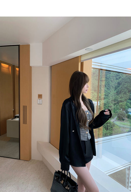 Wed. 老錢casual 緞面連帽上衣 黑