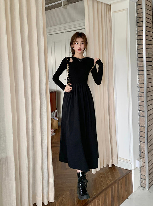 Fri. 優雅通勤 不規則縷空赫本連衣裙 黑