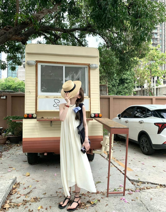 Sun. 氣質溫柔垂垂背心連身裙 米色