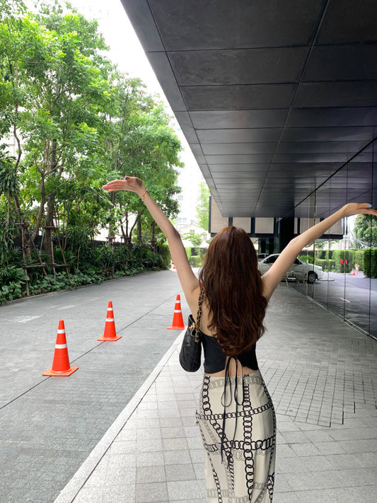 Sun. 後背綁帶平口上衣 老錢幾何半身魚尾裙