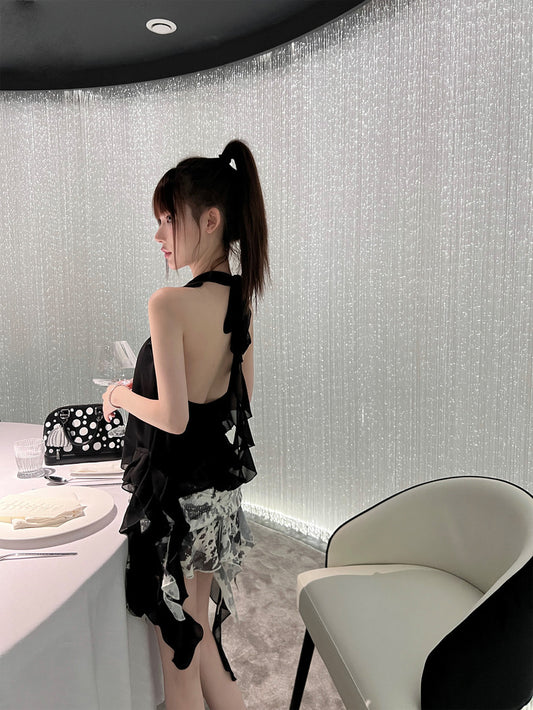 Sat. 珍珠鏈脖挖背連身裙 黑