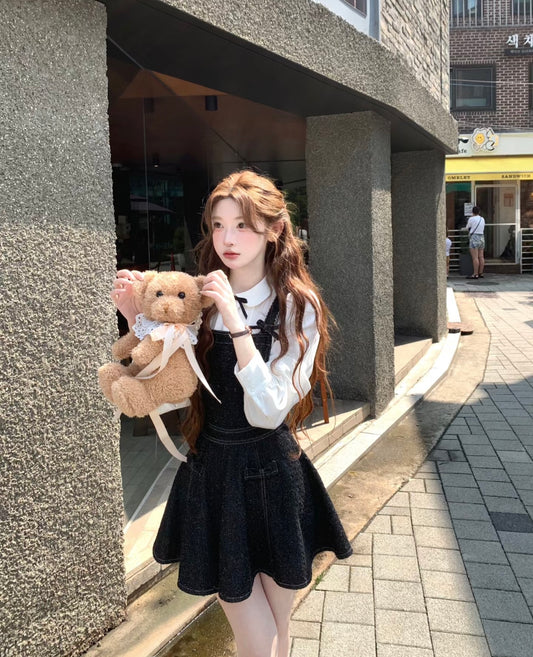 Sat. 奧斯丁假期 可愛牛仔蝴蝶結吊帶裙娃娃領襯衫套裝
