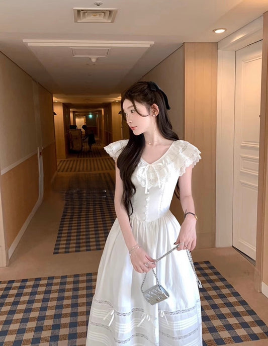 Thu. 古董天使 白月光法式翻領收腰純棉連身裙 長款/短款