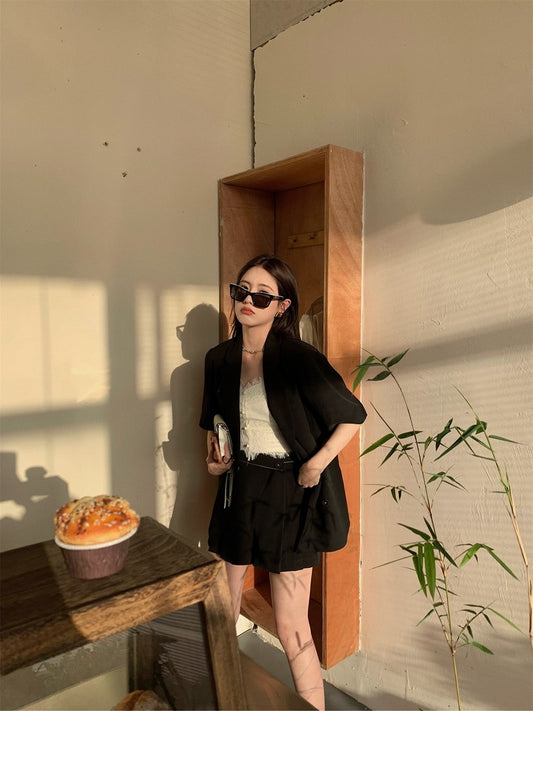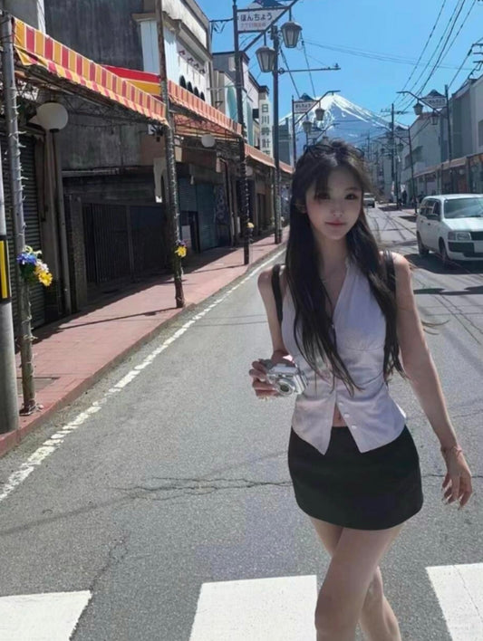 Set. 韓女週末日 純欲翻領修身上衣 低腰短裙套裝