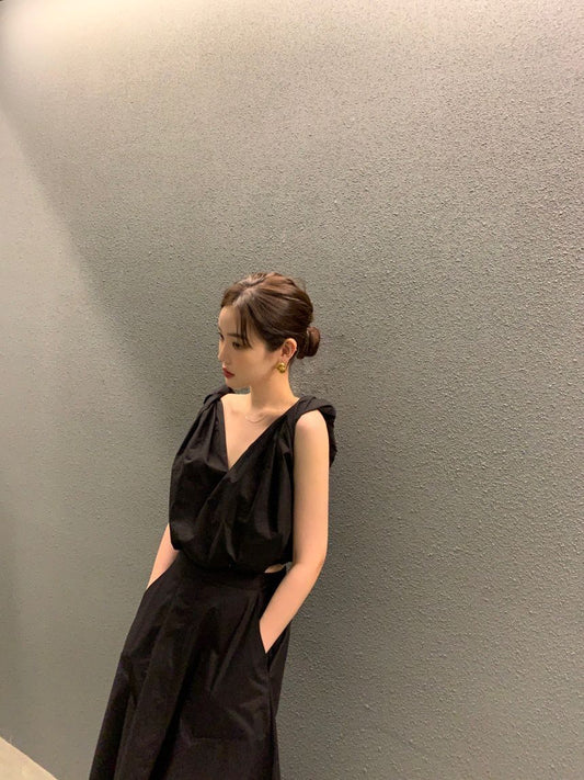 Mon. 扭結設計肩v領背心 黑
