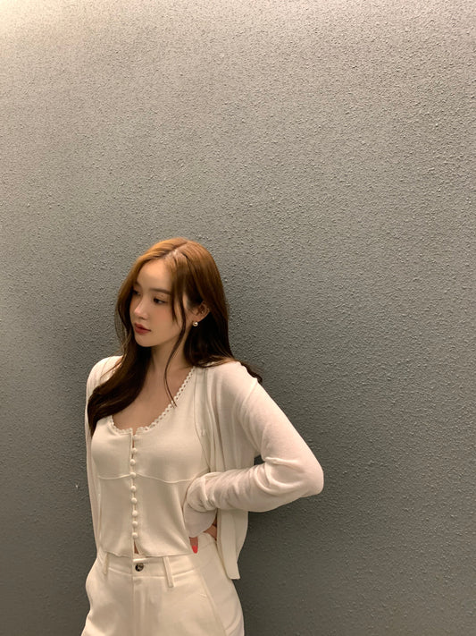 Sun. 排扣水滴邊背心 米白