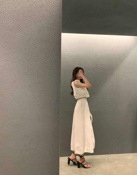 Sat. 極簡老錢風穿搭 背心 半身裙 白