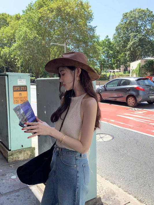 Wed. 氣質綁帶美背針織背心 米白