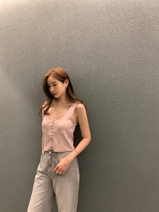 Sun. 排扣水滴邊背心 粉