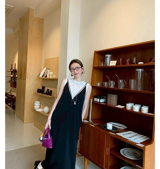 Wed.美式慵懶鬆弛 簡約U領素雅背心 黑/白