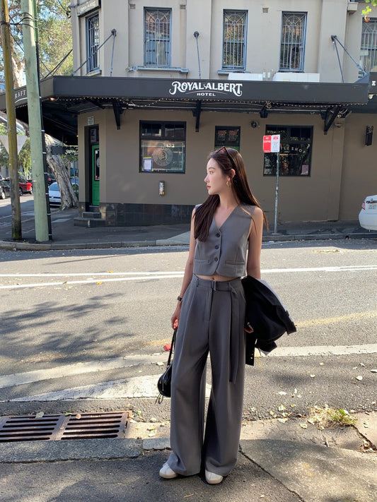 Sat. 韓系chic質感西裝可調節背心 西裝褲 灰