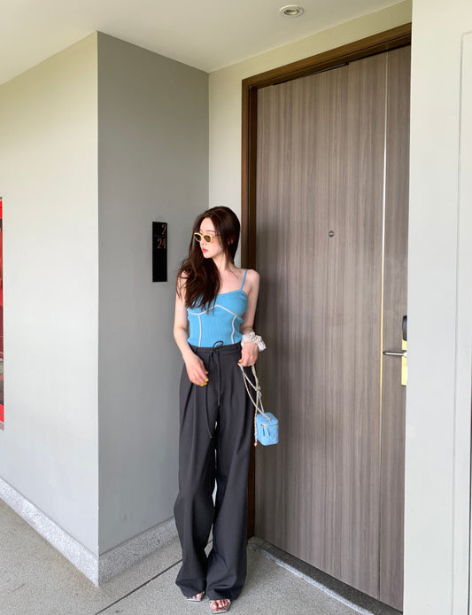 Thu. 撞色短版上衣+開叉背心 灰T卡其色背心