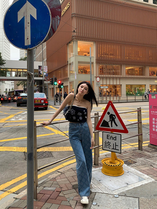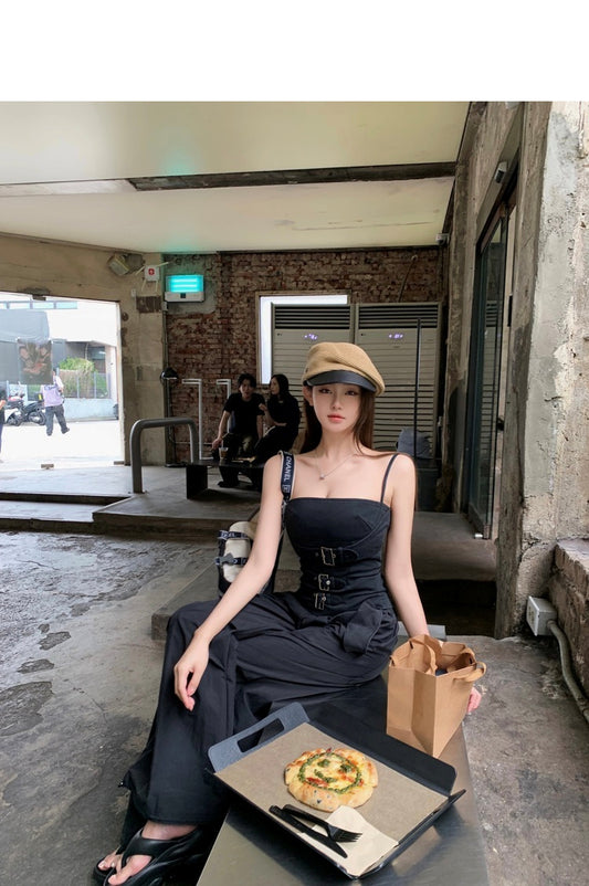 Sat. 朋克辣妹 機能設計感私服酷辣工裝抹胸 休閒褲 黑