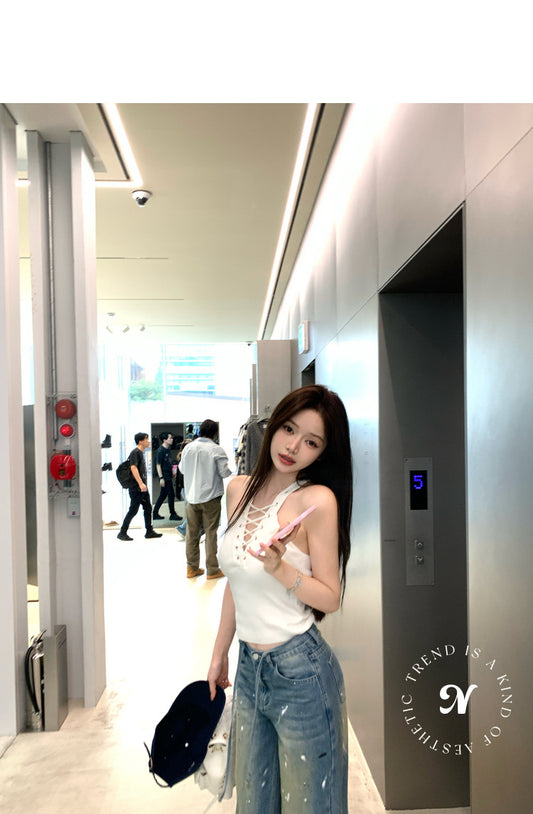 Wed. 欲辣小巴balma*n辣妹交叉綁帶削肩背心 白