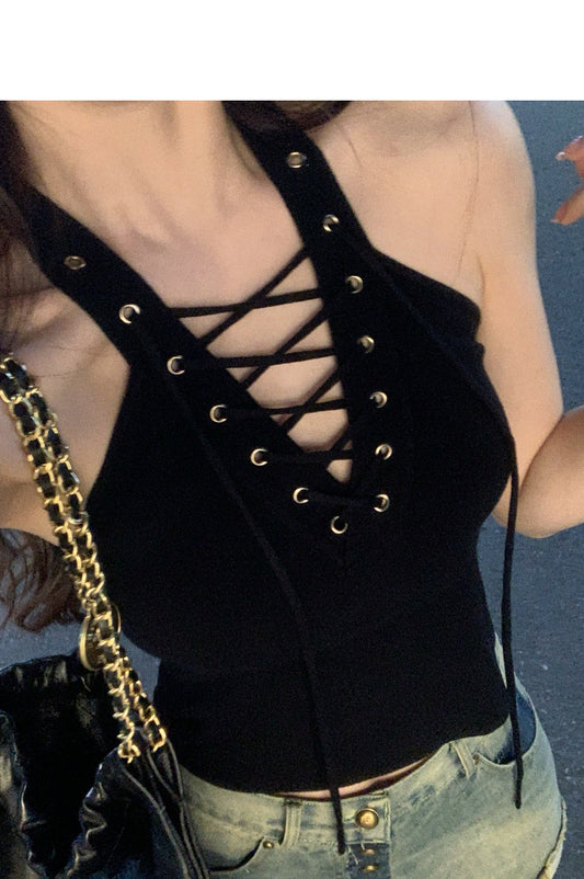 Wed. 欲辣小巴balma*n辣妹交叉綁帶削肩背心 黑