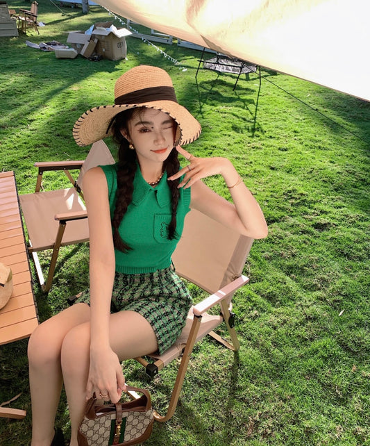 Sat. 柔軟芯棉刺繡口袋背心 綠