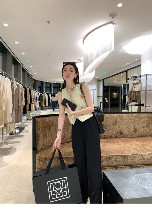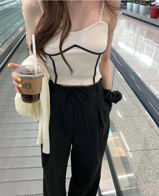 Thu. 撞色短版上衣+開叉背心 白T黑色背心