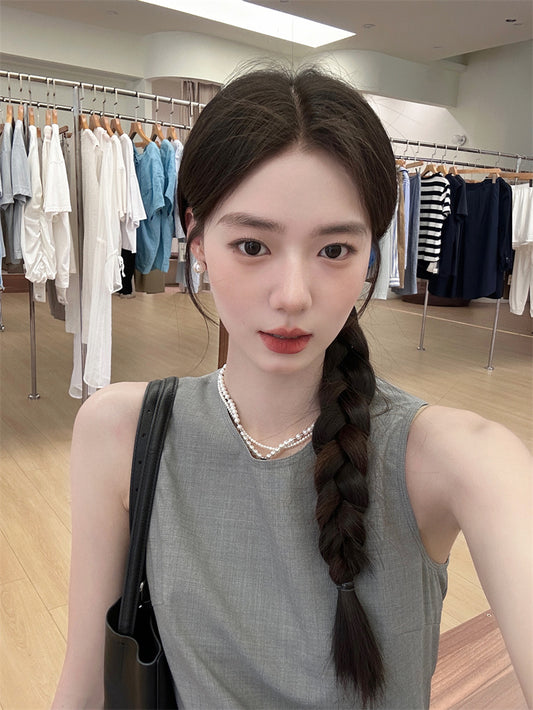 • Sat.簡約單色馬甲背心+百褶裙套裝 白