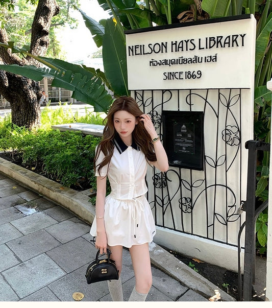 Set. 元英看秀miu套装 學院襯衫澎澎裙套裝