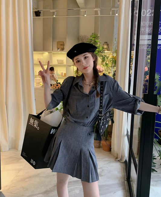 • Set. 元英看秀miu套装 學院襯衫澎澎裙套裝