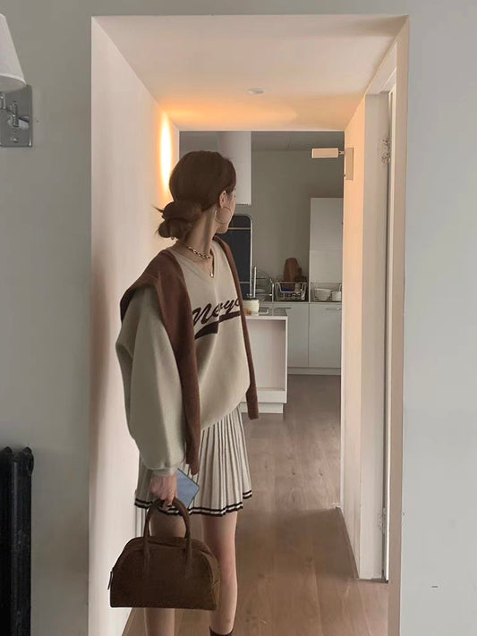 Sat. 氣質歐膩 慵懶字母針織上衣 百褶裙