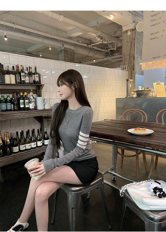 Wed. 學院千金 撞色修身tb風針織外套 灰