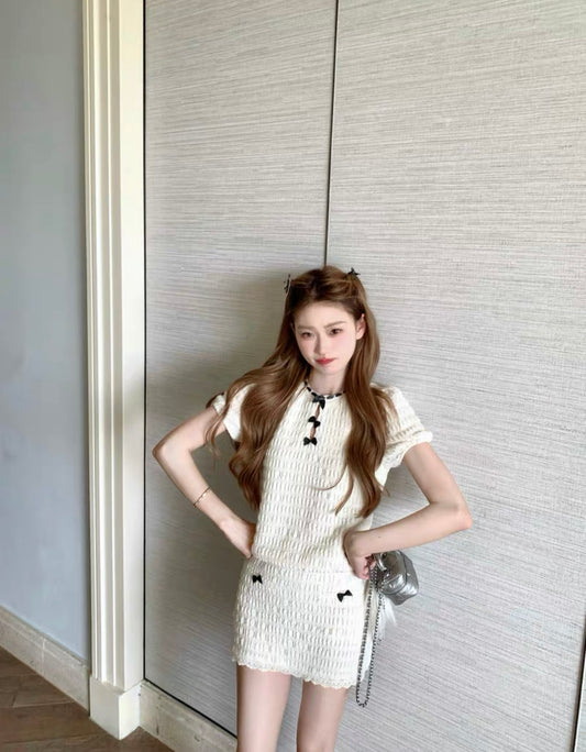 • Sat. 甜心維維安 乖巧氣質短裙套裝 白/黑
