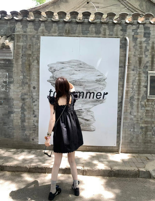 Wed. 小赫本 簡約平口蝴蝶結設計小黑裙