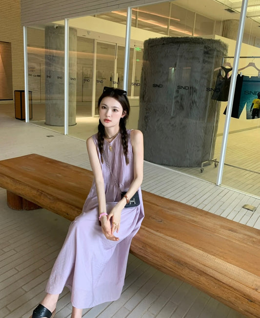 Sun. 圓領壓摺A字裙 淺紫