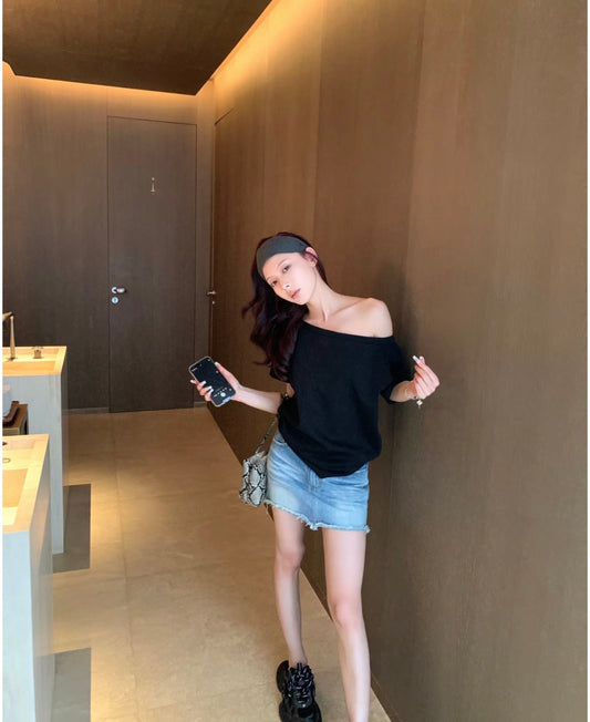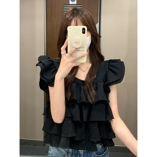Wed. 韓國荷葉邊質感上衣 黑
