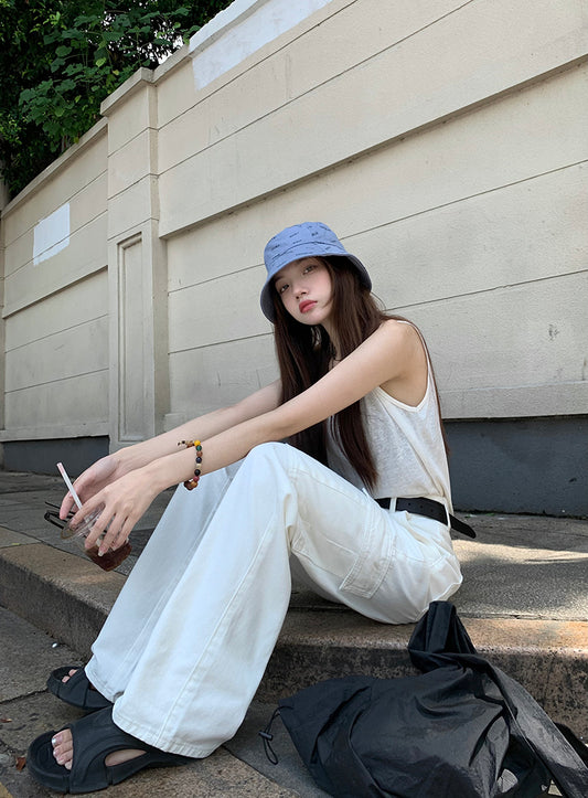 Fri. 大口袋牛仔工裝褲 米白