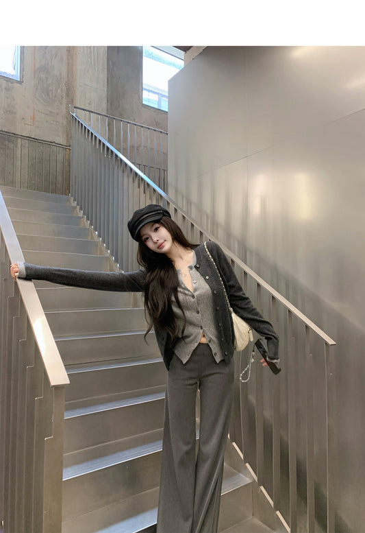 Sat. 韓系chic質感西裝可調節背心 西裝褲 灰