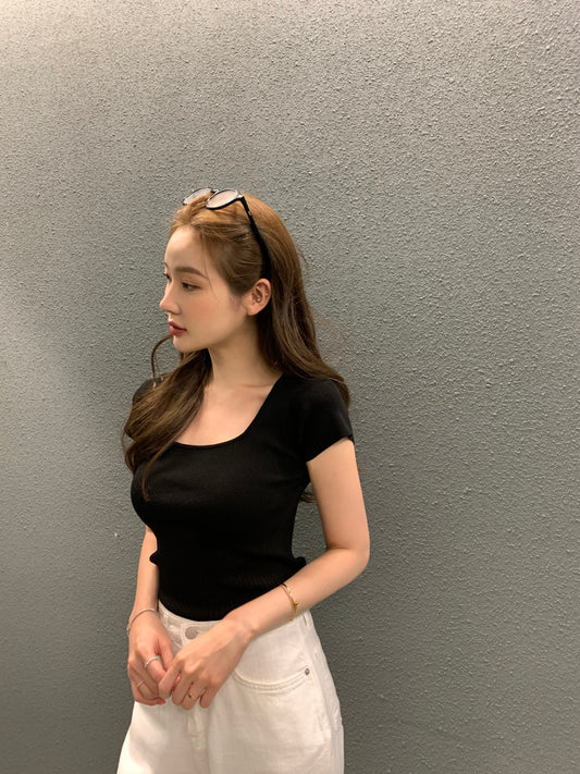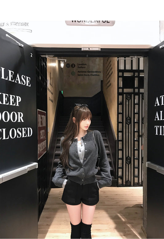 Sun. 高智系美人 慵懶假兩件式百搭鈕扣針織上衣 灰