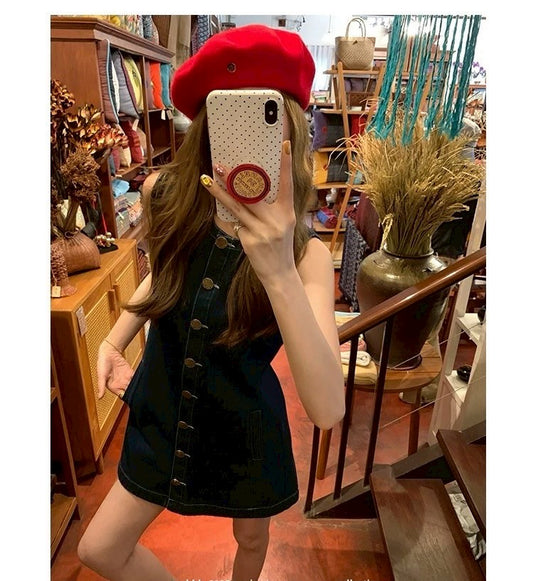 Mon. 南法湖邊 單排扣圓領牛仔連身裙