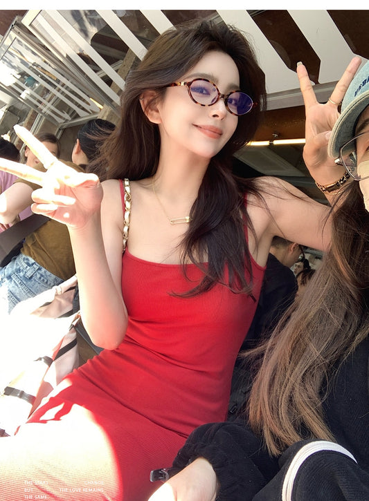 Thu. ''skims''超模紙片裙 吊帶可調結連身裙 紅