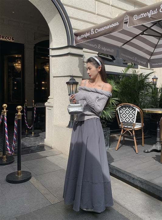 Tue. 氣質一字鏈肩麻花針織上衣 灰