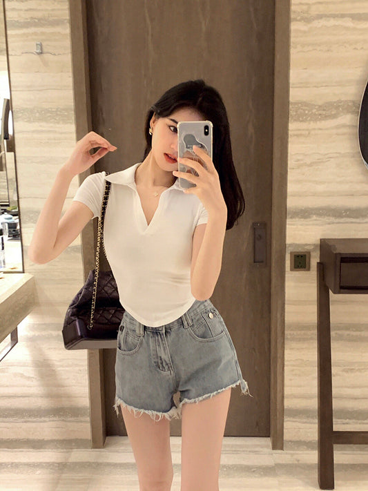 Sun. 自留 修身Polo領u弧上衣 白/灰