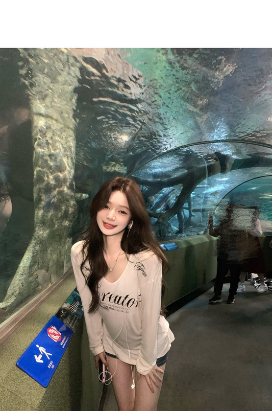Sun. 韓感博主 休閒慵懶長袖面膜長袖上衣 糯白