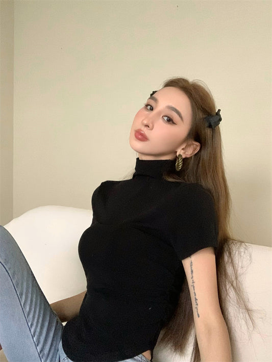 Wed. 顯瘦羊毛高領短袖上衣 米白