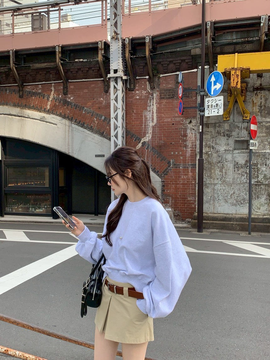 Fri. 休閒慵懶圓領衛衣 韓版百搭褲裙 花灰卡褲