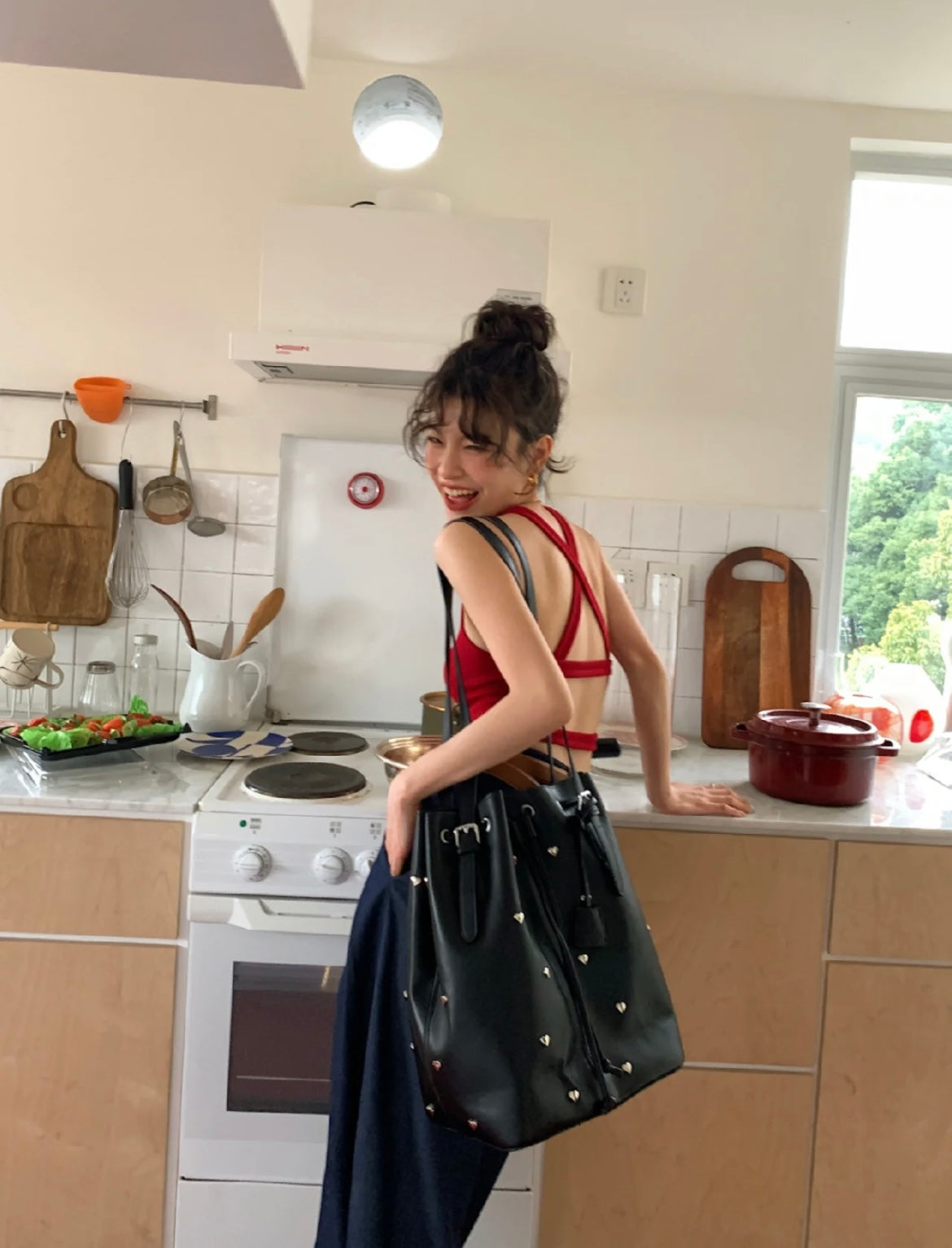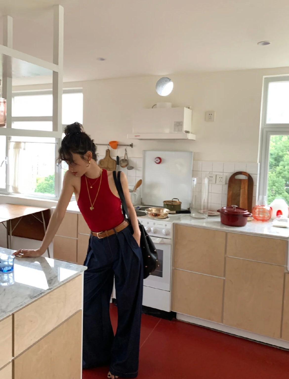 Fri. 光澤仿牛仔藍天絲西裝褲