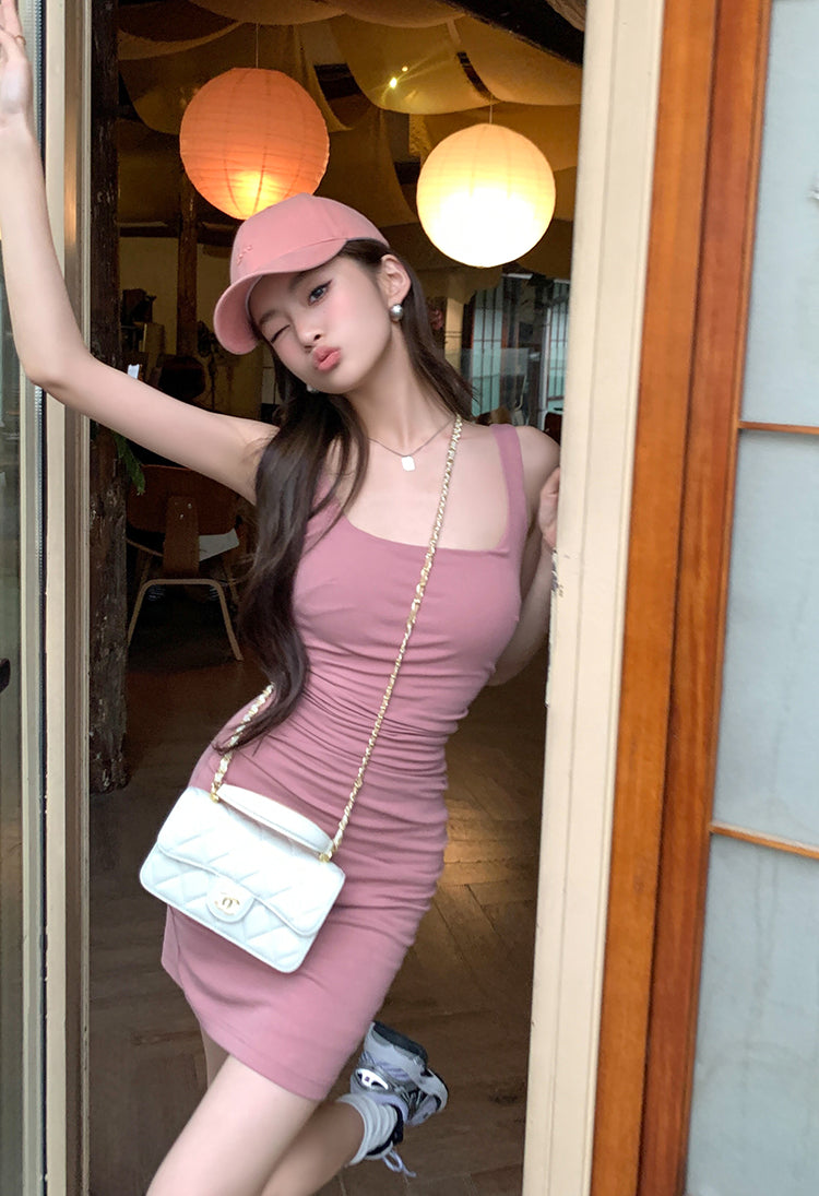 Fri. 副乳掰掰 遮肉珍妮連身裙 粉